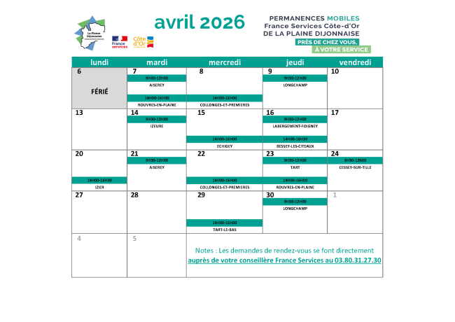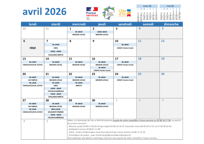 Permanences France services du mois d'Avril 2026