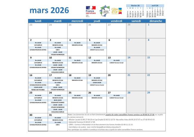 Permanences France services du mois de Mars 2026