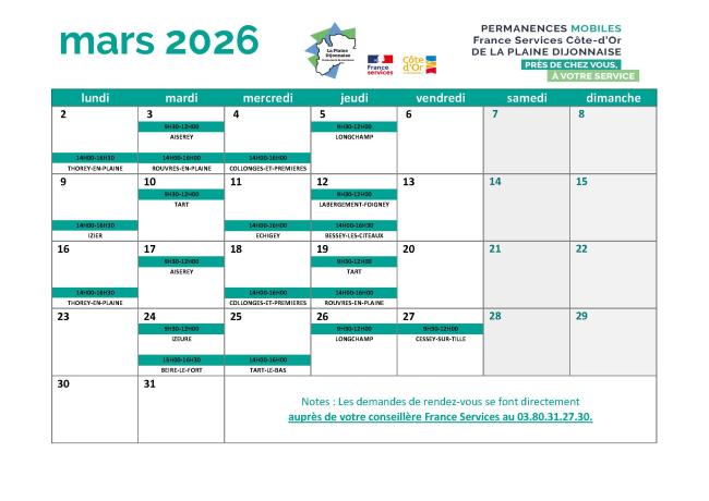 Permanences Mobiles France services du mois de Mars 2026