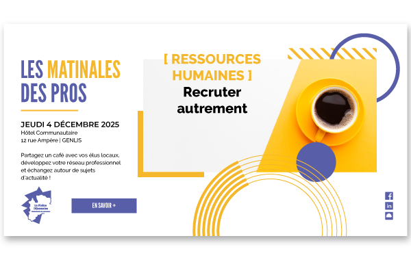 Le service Développement économique de la Communauté de Communes de la Plaine Dijonnaise vous convie à une nouvelle Matinale des Pros sur le thème « Recruter autrement : mobiliser les solutions locales pour répondre à vos besoins », le jeudi 4 décembre 2025, de 8h30 à 10h00, dans nos locaux situés 12 rue Ampère, à GENLIS.