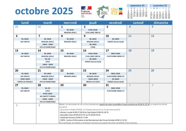 Les plannings sont en ligne. N'hésitez pas à contacter une Conseillère France services pour en savoir + !