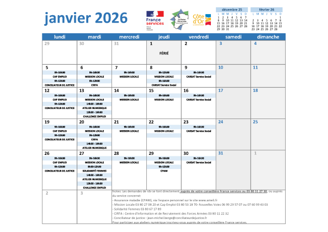 Permanences France services du mois de Janvier 2026