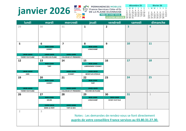 Permanences Mobiles France services du mois de Janvier 2026