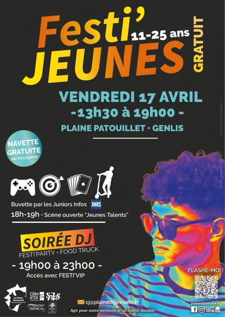 La Communauté de Communes de la Plaine Dijonnaise vous donne rendez-vous vendredi 17 avril 2026, dès 13h30 à GENLIS (Plaine Patouillet), pour la 4ème édition de Festi'Jeunes !
